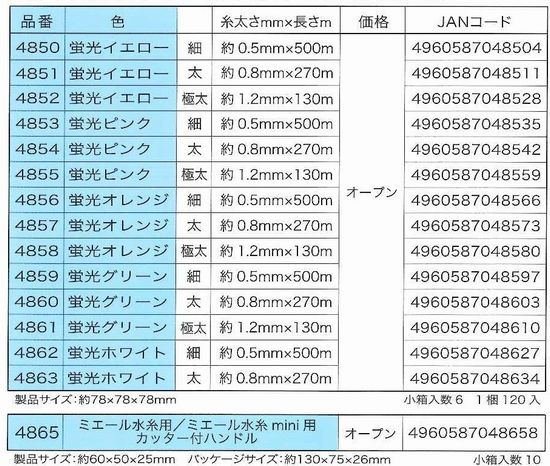 4859 | 蛍光グリーン | 細 | 約0.5mmx500m |
