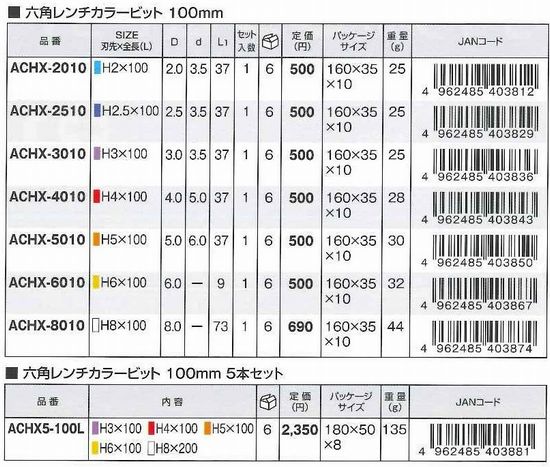 ■六角レンチカラービット100mm 5本セット