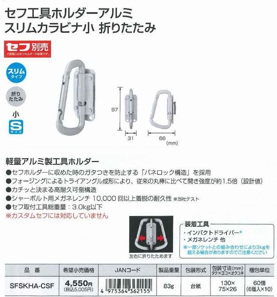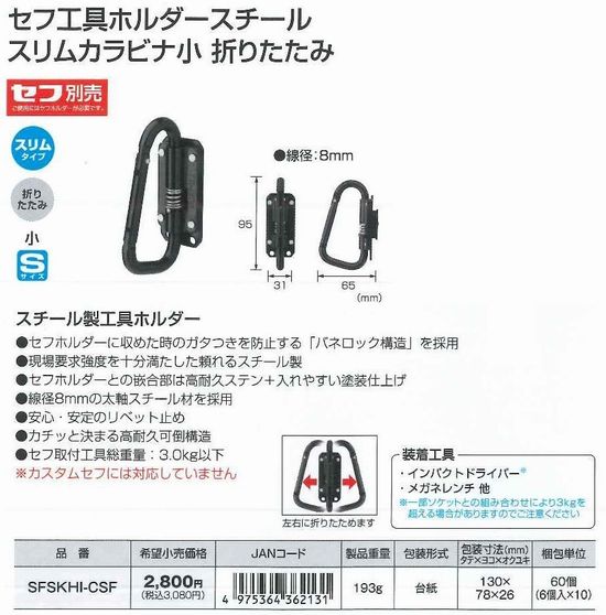 セフ工具ホルダースチールスリムカラビナ小折りたたみ SFSKHI-CSF