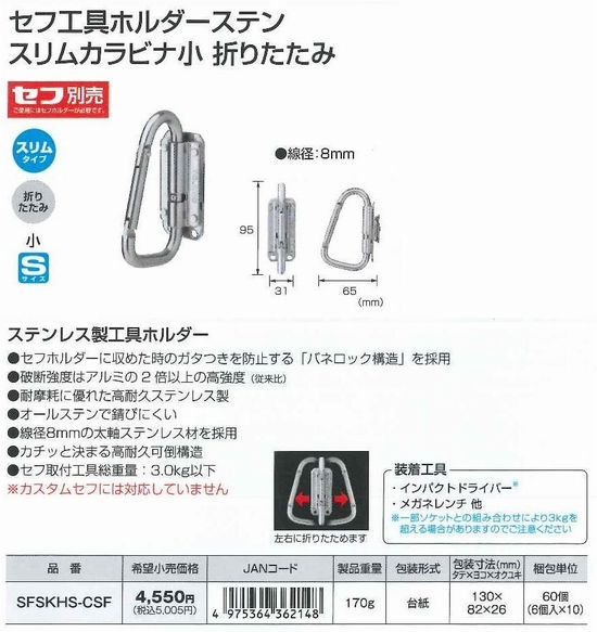 セフ工具ホルダーステンスリムカラビナ小折りたたみ SFSKHS-CSF