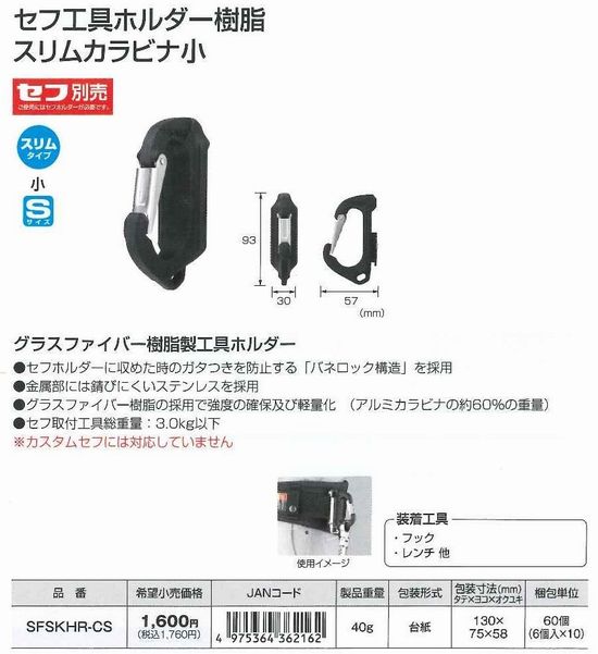 セフ工具ホルダー樹脂スリムカラビナ小 SFSKHR-CS