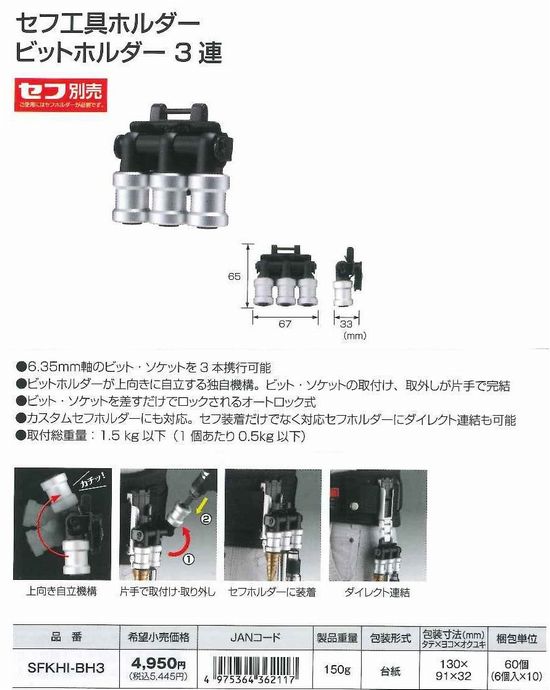セフ工具ホルダービットホルダー3連 SFKHI-BH3
